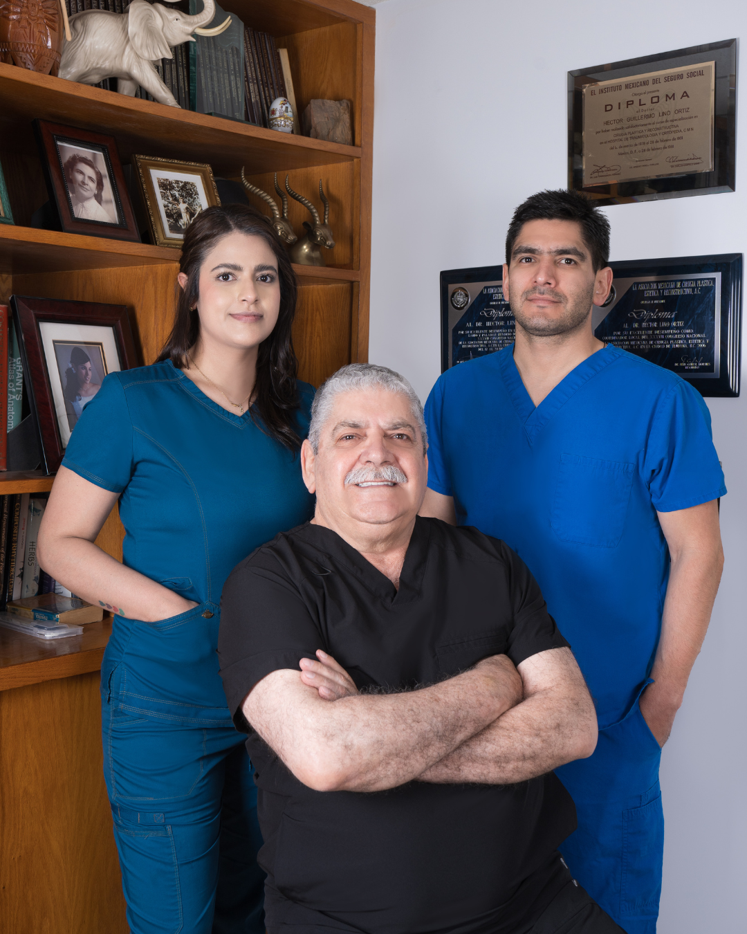Hoy, su pasión continúa, no solo en sus propias manos, sino en las de su hijo, también cirujano plástico, y su compañera inseparable en cada procedimiento: su hija, enfermera y guardiana del detalle humano. Juntos, han formado un equipo que entiende la cirugía como un arte y la atención como un acto de amor.